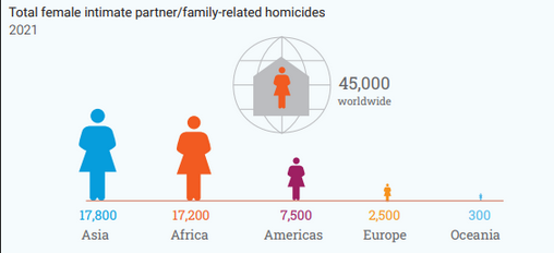 - Africa reported the highest number of intimate partner/family-related homicides of women in 2022, surpassing Asia for the first time in 13 years.
