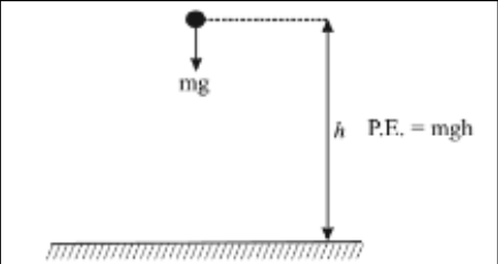 - If a mass m is at a height h above a lower level, the P.E. possessed by the mass is mgh.