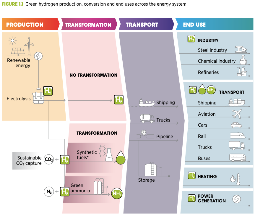 The benefits of green hydrogen include: