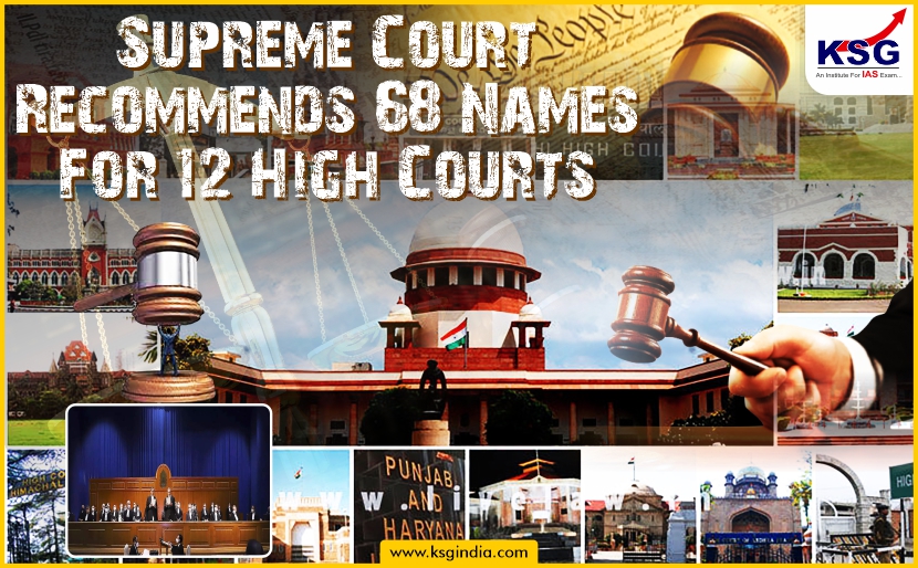 - The Collegium considered 112 candidates for High Court appointments. Sixty eight of 112 names have been recommended for appointments to 12 High Courts. Of the 68, there are 44 from the Bar and 24 from the Judicial Service.