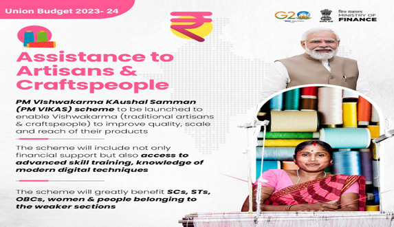 - A package of support for traditional craftsmen and craftspeople called the PM Vishwakarma Kaushal Samman has been designed to help them expand the scope and quality of their product lines while integrating with the MSME value chain.