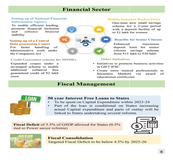 - Revamped credit guarantee scheme for MSME will take effect from April 1 2023 with the infusion of Rs. 9000 crores into the corpus.