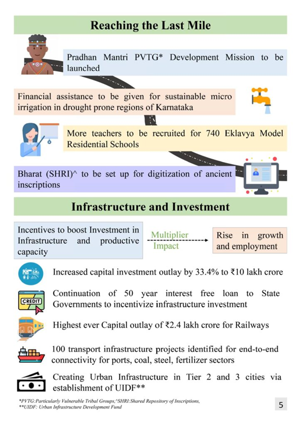 - To improve the socio-economic condition of the particularly vulnerable tribal groups, the PMPVTG Development Mission will be launched, to saturate PVTG habitations with basic facilities.