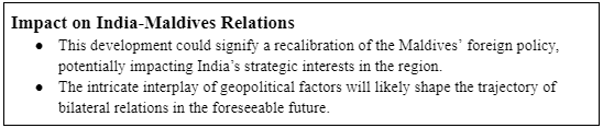 - China's Expanding Sphere: Against the backdrop of China's ambitious Belt and Road Initiative (BRI), the Maldives, like other Indian Ocean nations, has witnessed a growing influence, prompting shifts in foreign policy dynamics.