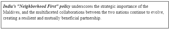 - Economic Aid: India's generous economic aid, exceeding $500 million through the State Bank of India, has contributed to the Maldives' economic growth.