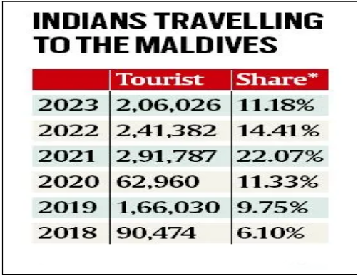 - India's Dominance in Maldives Tourism: Indian tourists have become the top source market for the Maldives, especially after the COVID-19 pandemic. In 2023, they accounted for a significant 11.2% of total tourist arrivals, with 18.42 lakh visitors.