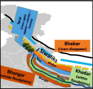 - A system of older alluvium that was deposited far from the flood plains is represented by Bhangar.