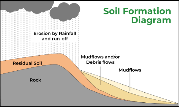 - By affecting drainage, erosion, and sediment deposition, the overall shape of the landscape, which includes hills, valleys, and other landforms, can have an effect on how soil is formed.