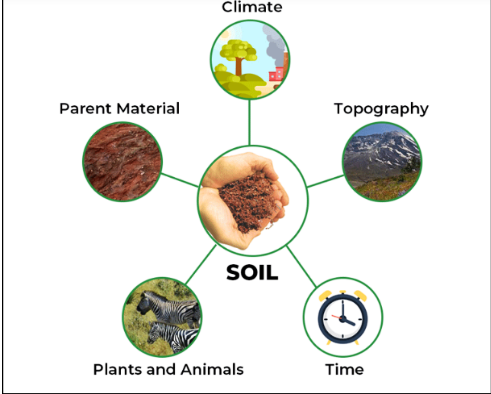 - Soil formation is significantly influenced by the climate, including temperature and precipitation.