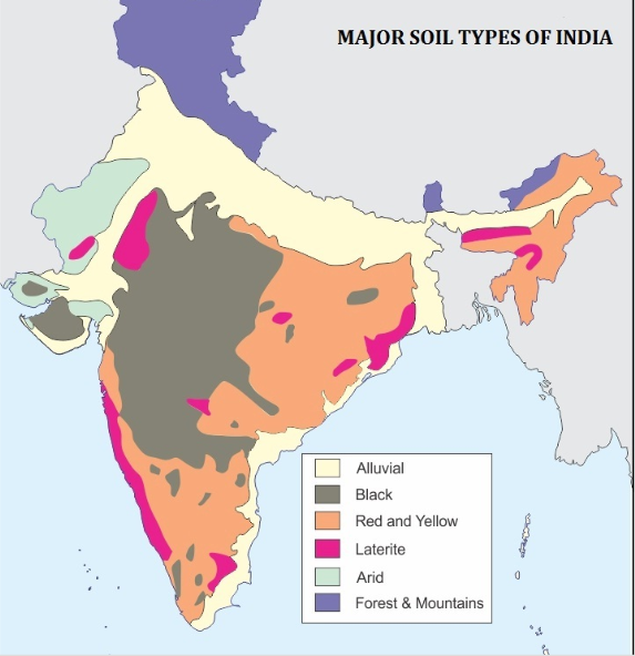 Additionally, parts of Orissa, Chattisgarh, and the southern portions of the middle Ganga plain have yellow and red soils.