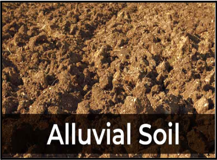 - The alluvial soils are various shades of grey, ranging from light grey to ash grey.