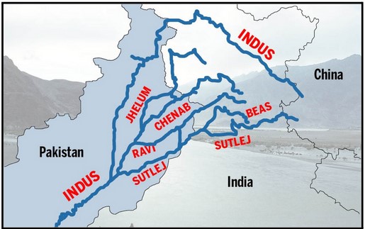 Afterwards, the Indus crosses the Salt Range near Kalabagh, entering the Punjab Plain. It receives the waters of the Jhelum, Chenab, Ravi, Beas, and Sutlej rivers, collectively known as the Punjab ("Five Rivers").