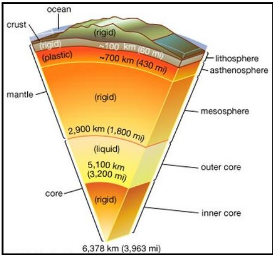 - Density varies within the mantle, ranging from 2.9 to 5.7 g/cm³.