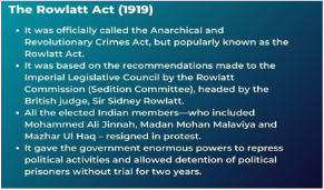 - Rowlatt Act: Enacted in 1919, the Rowlatt Act allowed the arrest and detention of Indians without trial, aiming to imprison nationalists without a chance to defend themselves. This angered nationalists, and Gandhi chose Satyagraha as a means to oppose it.