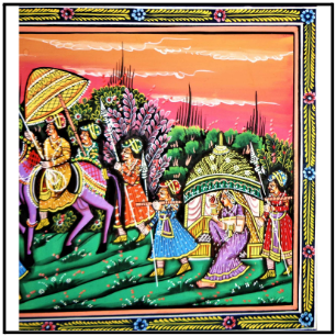 - Artistic Themes: Pattachitra predominantly portrays themes from Hindu mythology, religious stories, folklore, and deity figures. These narratives are depicted with simplicity using natural paints on fabric canvas.