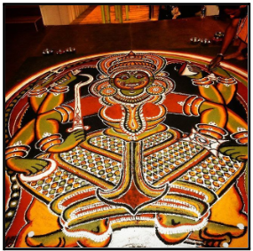 - Intricacies of Kalamezhuthu: The moment intricacies, measurements, and shading choices are meticulously chosen in each Kalamezhuthu painting, highlighting the precision and adherence to artistic standards.