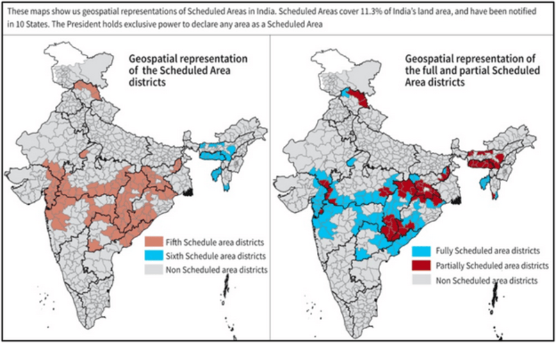 Scheduled Areas, encompassing 11.3% of India's total land area, have been officially designated in 10 States, which include Andhra Pradesh, Telangana, Odisha, Jharkhand, Chhattisgarh, Madhya Pradesh, Rajasthan, Gujarat, Maharashtra, and Himachal Pradesh.