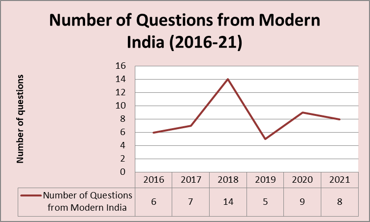 The number of questions asked from Modern Indian history is substantial. The questions on Modern Indian history have been compiled below after careful analysis of the previous year’s UPSC papers from 2016-2021.